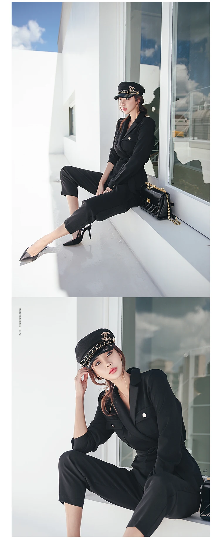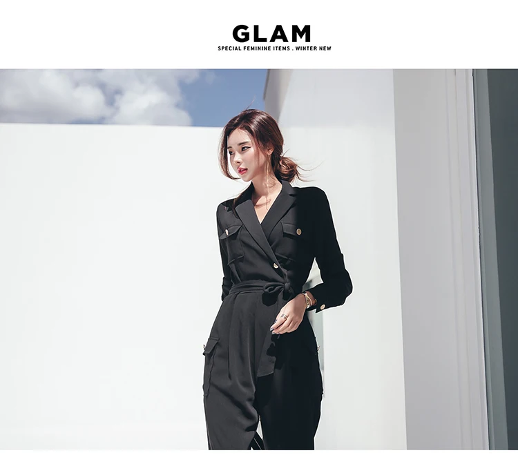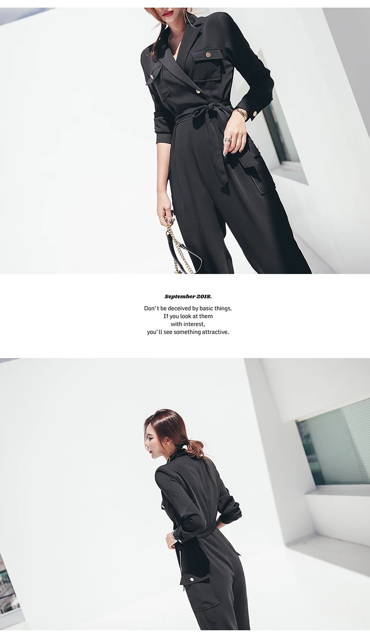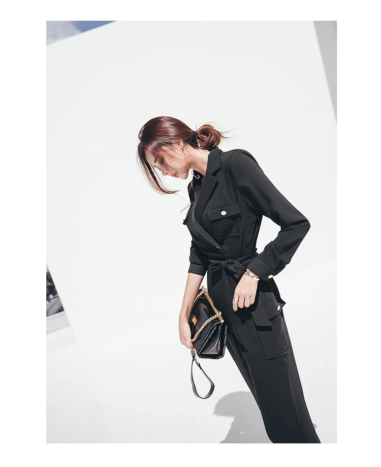 Комбинезон и комбинезон на шнуровке с длинным рукавом, черный, зубчатый, для женщин, для работы, бизнеса, длина по щиколотку, штаны, комбинезоны, тонкая талия, длинный комбинезон, 2020 LJ61 Измерение: (Единица измерения: см)РазмерОбхват грудиСумка на плечоДлинаРукаваОбхват талииS88371425772М92381435876L96391445980XL100401456084