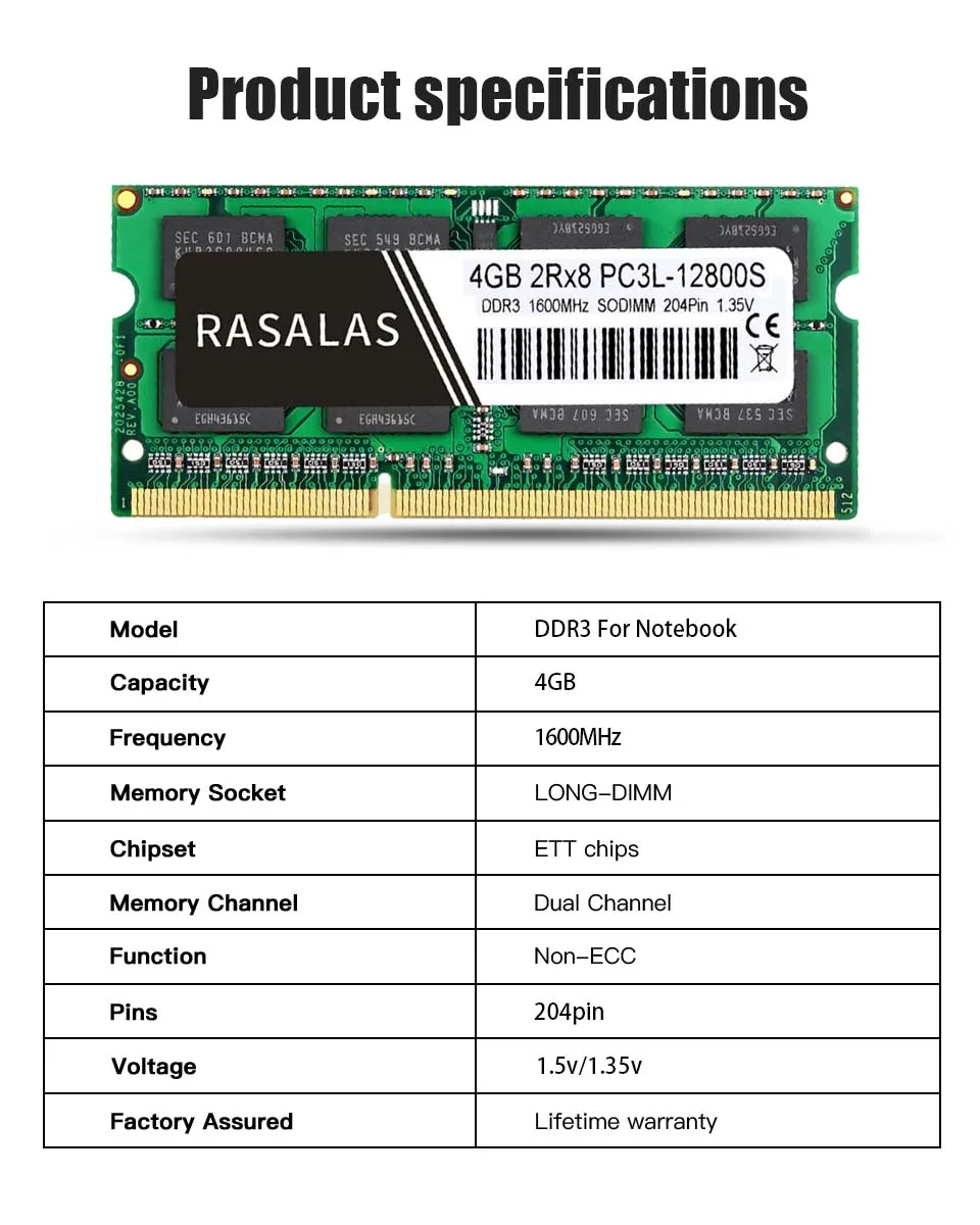 100% заводское Тестирование с стабильным качеством Гарантия 3 года Достаточный запас, может быть отправлен быстро 4GB 1600Mhz 12800S 1,5 V 1,35 V