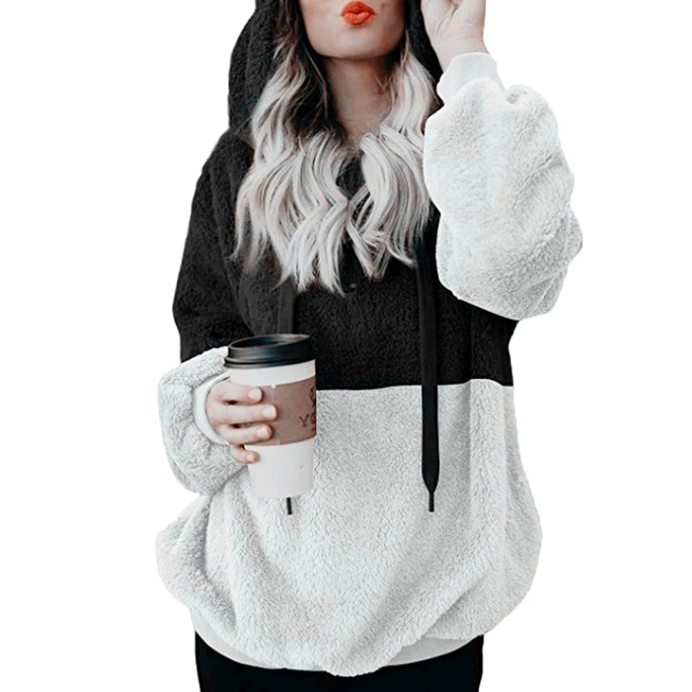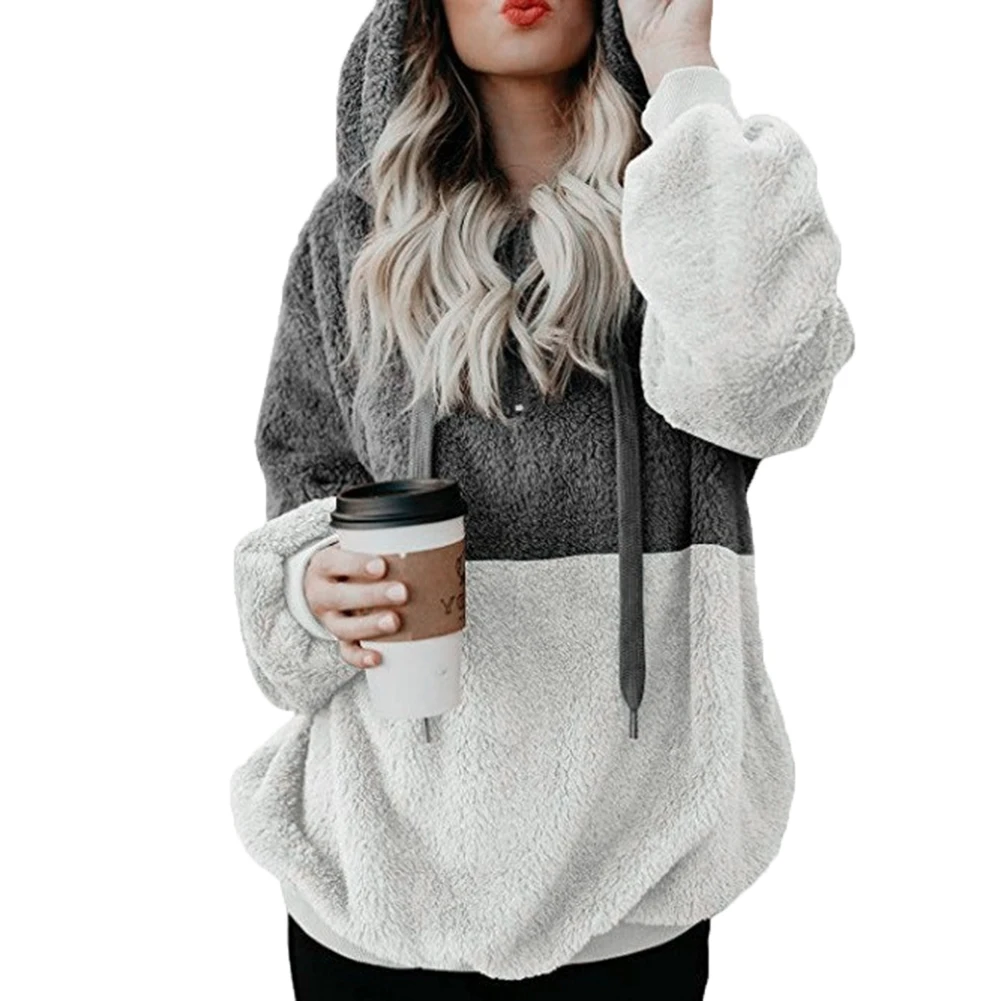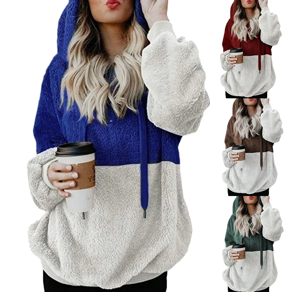 Модная женская плюшевая толстовка с капюшоном размера плюс в стиле пэчворк с длинными рукавами, Повседневная Толстовка с капюшоном для женщин