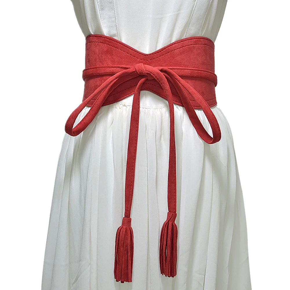 Модный женский однотонный корсетный пояс из искусственной кожи с кисточками и бантом