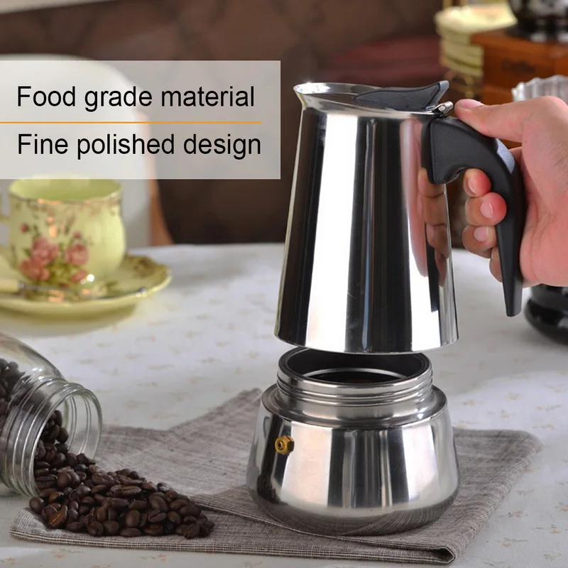 -- Легко моется: кастрюля для эспрессо из нержавеющей стали безопасна в посудомоечной машине и моется вручную. Тщательно высушите полотенцем.