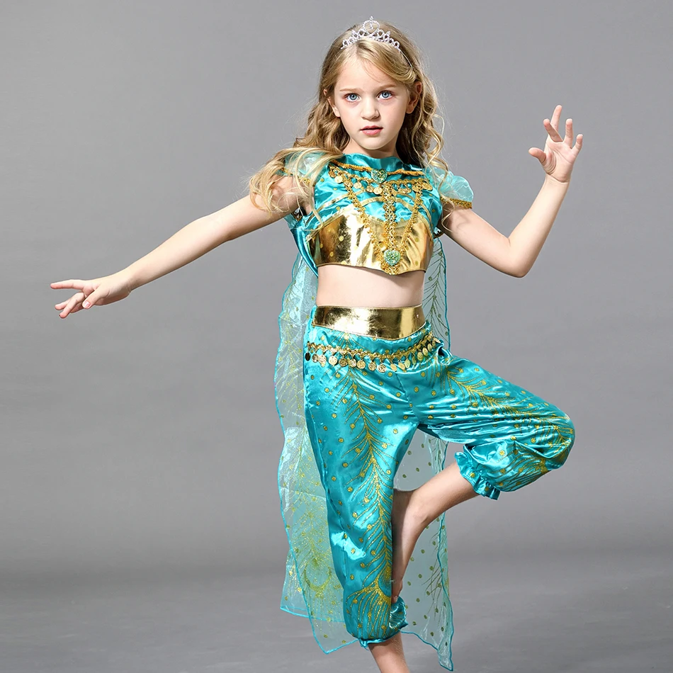 Название: костюм Аладдина жасмина для детей; Костюм для девочек для костюмированной вечеринки на Хэллоуин; Наряд принцессы с накидкой для девочек; Комплект из 2 предметов