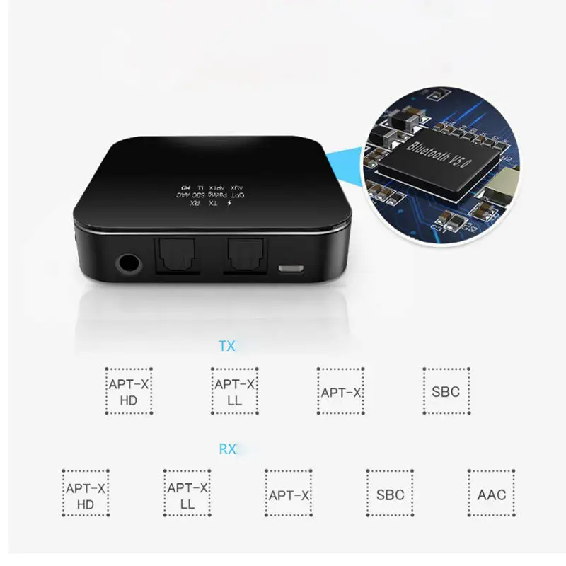 Первый в мире aptX HD в режиме TX/RX: питание от чипсета premium CSR8670, адаптер Bluetooth VAORLO поддерживает новейший Bluetooth V5.0. С aptX HD, наш bluetooth-передатчик/приемник может передавать стабильное аудио и передавать звук качества CD по беспроводному соединению Bluetooth.
