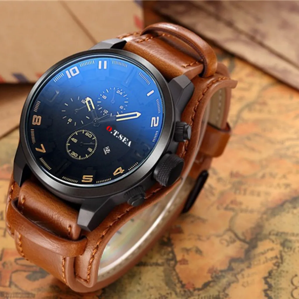 Роскошный ремешок, модные мужские кварцевые часы, мужские три календарь с глазами, ремень, кожаный сплав, кварцевые часы, relogio masculino reloj mujer