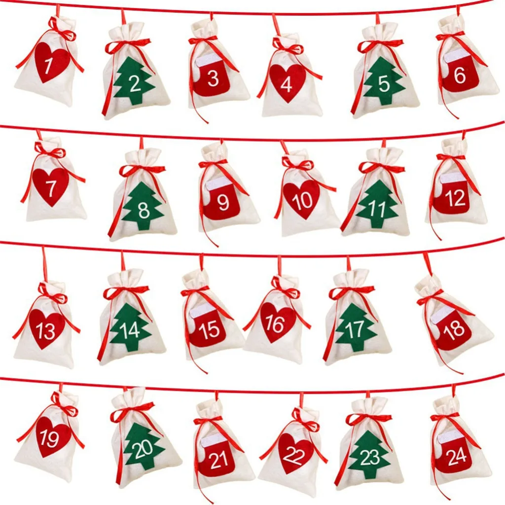 Ткань 30 дней Рождество обратный отсчет Адвент календарь конфеты подарочные мешки