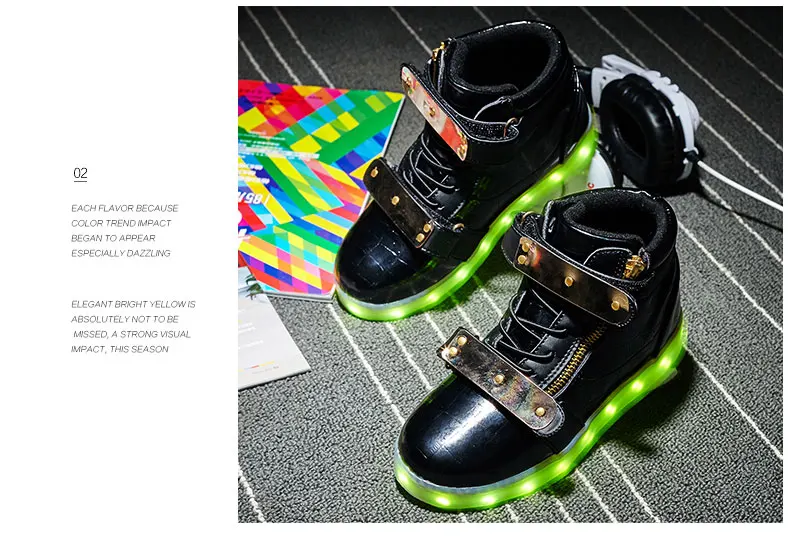 Размер 25-37 Детская светодиодная светящаяся обувь с usb-зарядкой детская обувь на липучке детские светящиеся кроссовки детская обувь с подсветкой