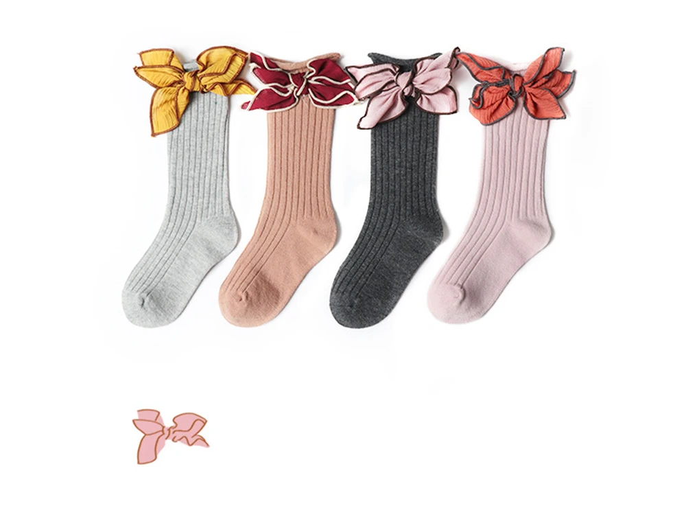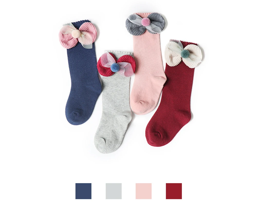 Детские осенне-зимние модные гольфы для девочек носки с бантом для маленьких девочек хлопковые мягкие гольфы детские гольфы для девочек Модный дизайн, 100% новый бренд, высокое качество! Материал: хлопок