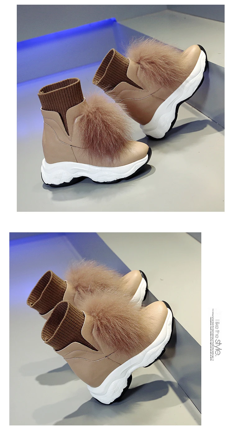 Women Winter Boots 2019 Warm Fur Snow Boots 8CM Heels Sneakers Plush Comfortable Thick Bottom Short Sock Boots Woman Botas Mujer