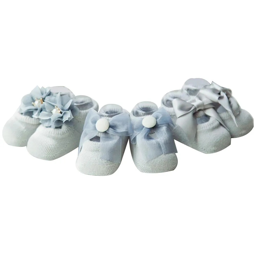 3 пары, милое детское платье с бантом и кружевными цветами, мягкие хлопковые нескользящие носки-Тапочки