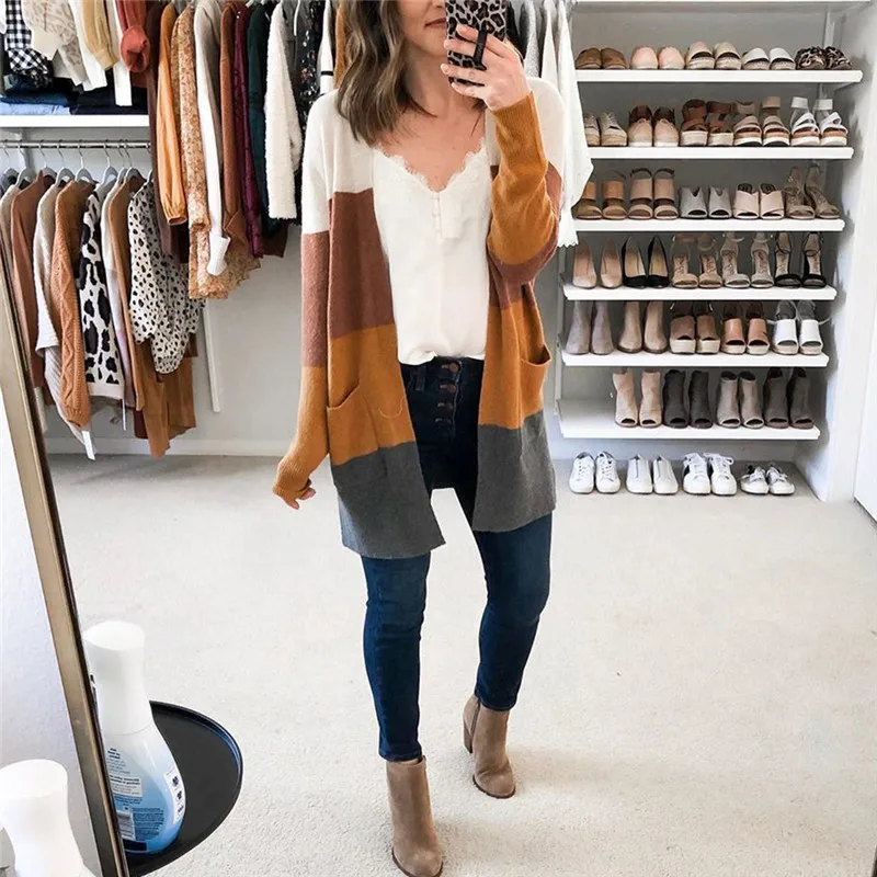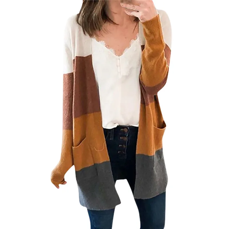 Женские повседневные с длинным рукавом Лоскутные карманные кардиганы Топы блузки пальто Описание продукта::