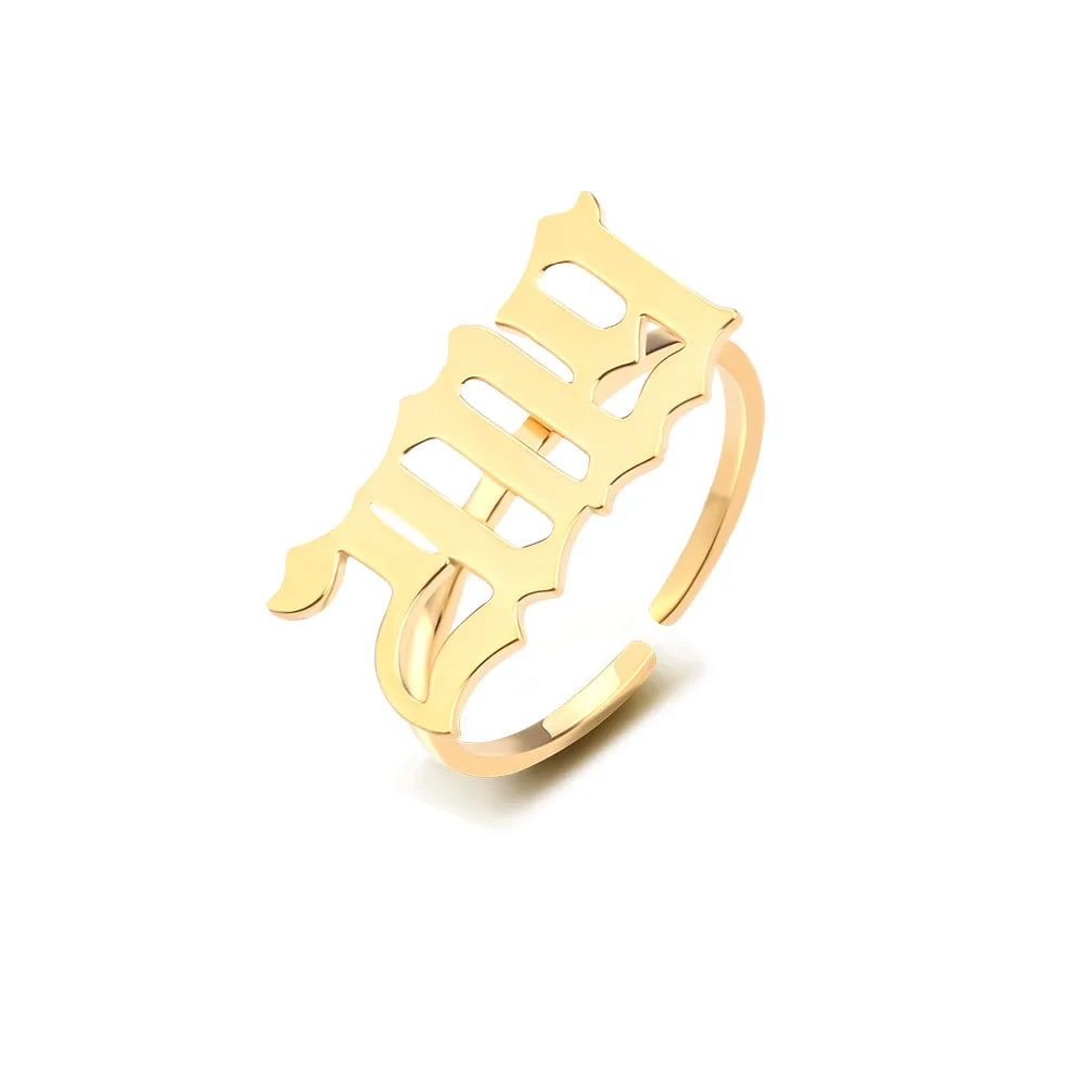 Старинное английское кольцо для женщин; Персонализированное кольцо с номером года; Кольцо из нержавеющей стали; Открытые Кольца в старом английском стиле; Юбилейное обручальное кольцо для пары