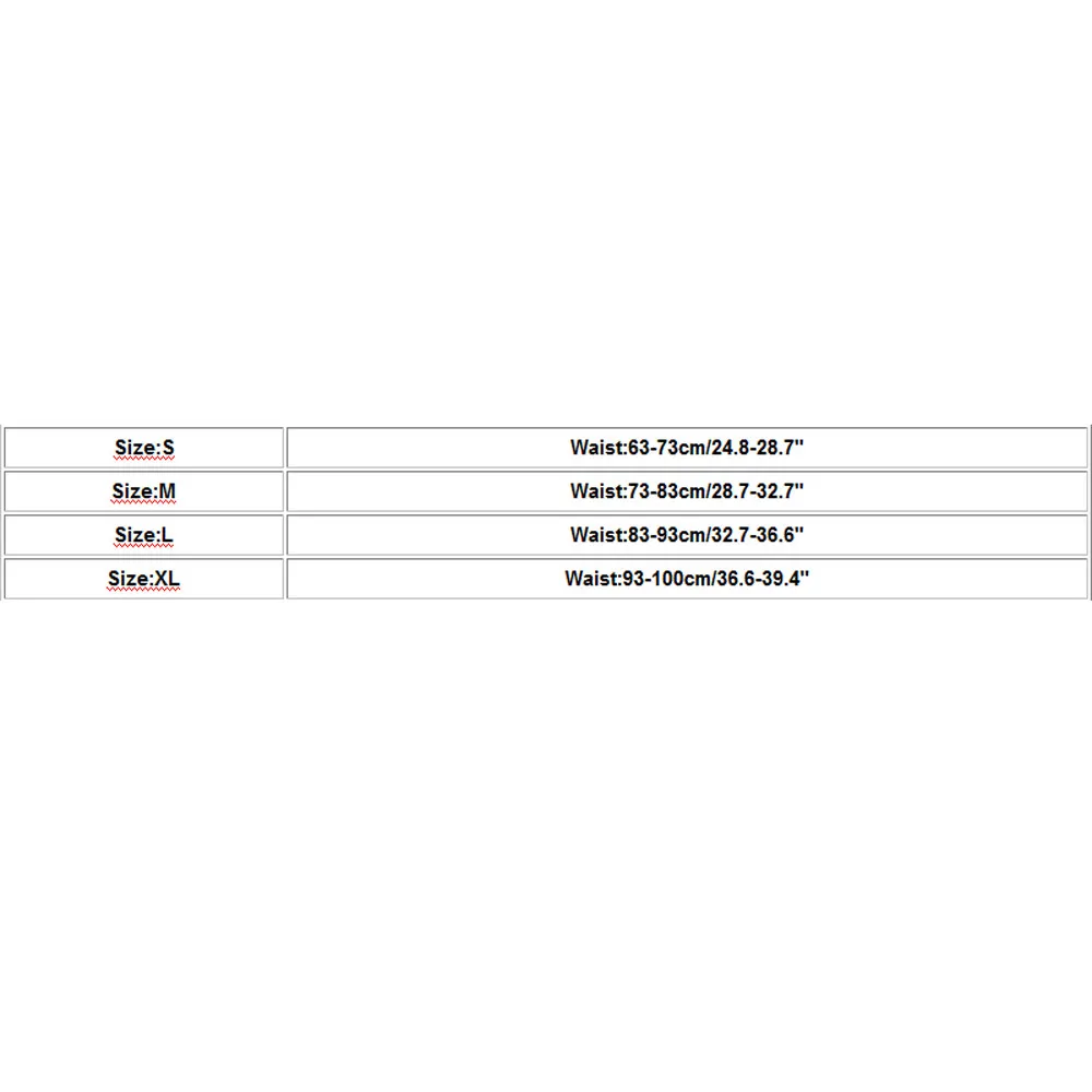 Size Waist S 63-73cm/24.8-28.7" M 73-83cm/28.7-32.7" L 83-93cm/32.7-36.6" XL 93-100cm/36.6-39.4"