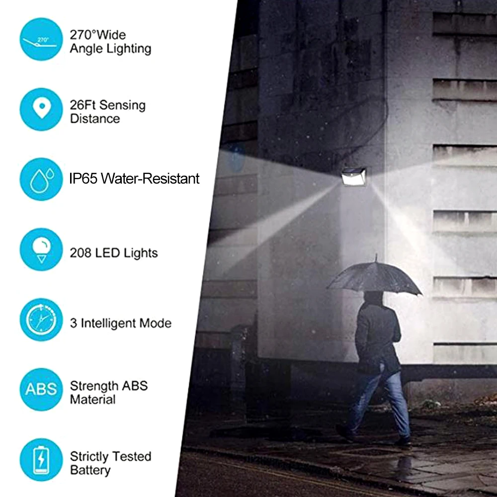 Это светильник с датчиком движения PIR. Питание от солнечной энергии, экологически чистые и энергосберегающие. Это идеальный наружный светильник освещения для патио, траектории, двора, сада, двора и т. д. Простая установка, проводка не требуется.