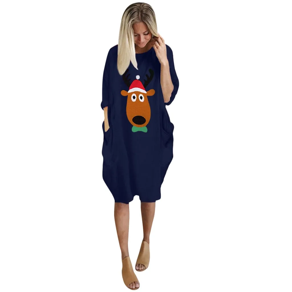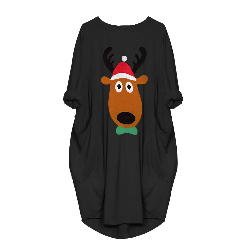 Женское платье размера плюс свободного кроя с круглым вырезом и длинным карманом рождественское платье