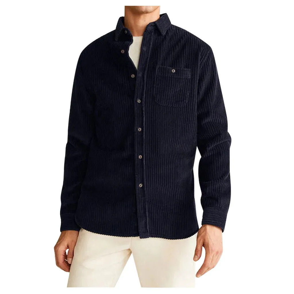 Мужская Осенняя мода Пальто Повседневная с длинным рукавом Твердые Топы Вельветовая Повседневная Блузка