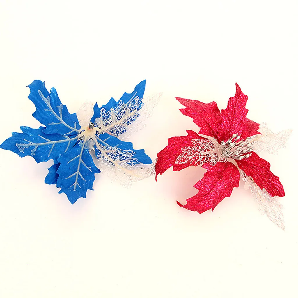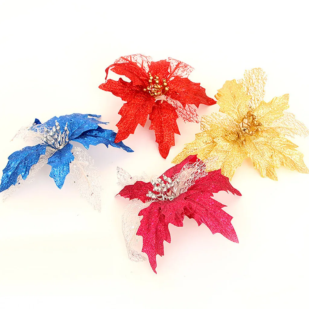 Поддельные цветы Пластиковые 20x20 см полые золотые блестки имитация на Рождество цветок Рождественская елка висячие украшения
