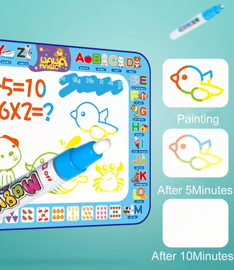 Стены или мебели. Нет необходимости тратить бумаги или чернила. Просто наполнен чистой водой с волшебной ручкой и готов к каракулю с