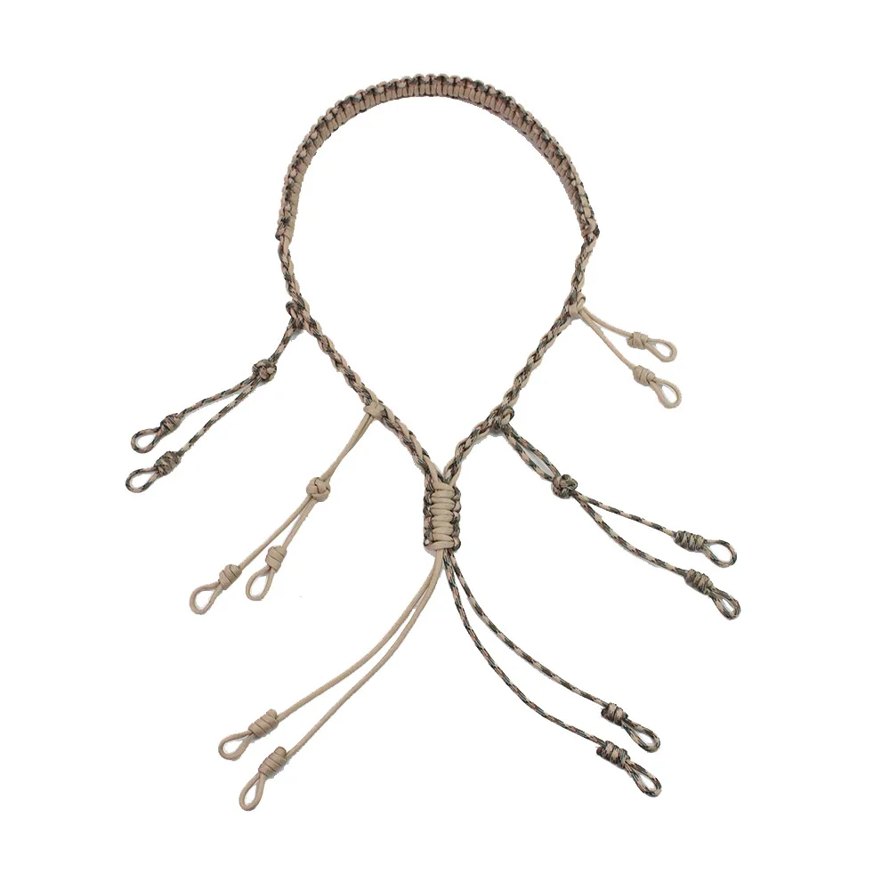 1) изготовлен из нейлона, прочный, износостойкий и не выцветает. 2) специальная оплетка делает ее более жесткой для использования на улице. 3) с 12 петлями, которые могут держать Ваш вызов утки или другие мелкие предметы надежно, каждая петля имеет регулируемый конец, чтобы плотно держать предметы. 4) с расширенным воротником, чтобы уменьшить стресс на шее. 5) Легкий и портативный светильник, отлично подходит для охоты на открытом воздухе. 6)6 цветов на выбор, чтобы подобрать одежду для вас.