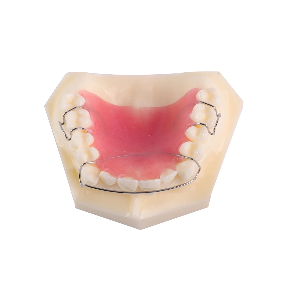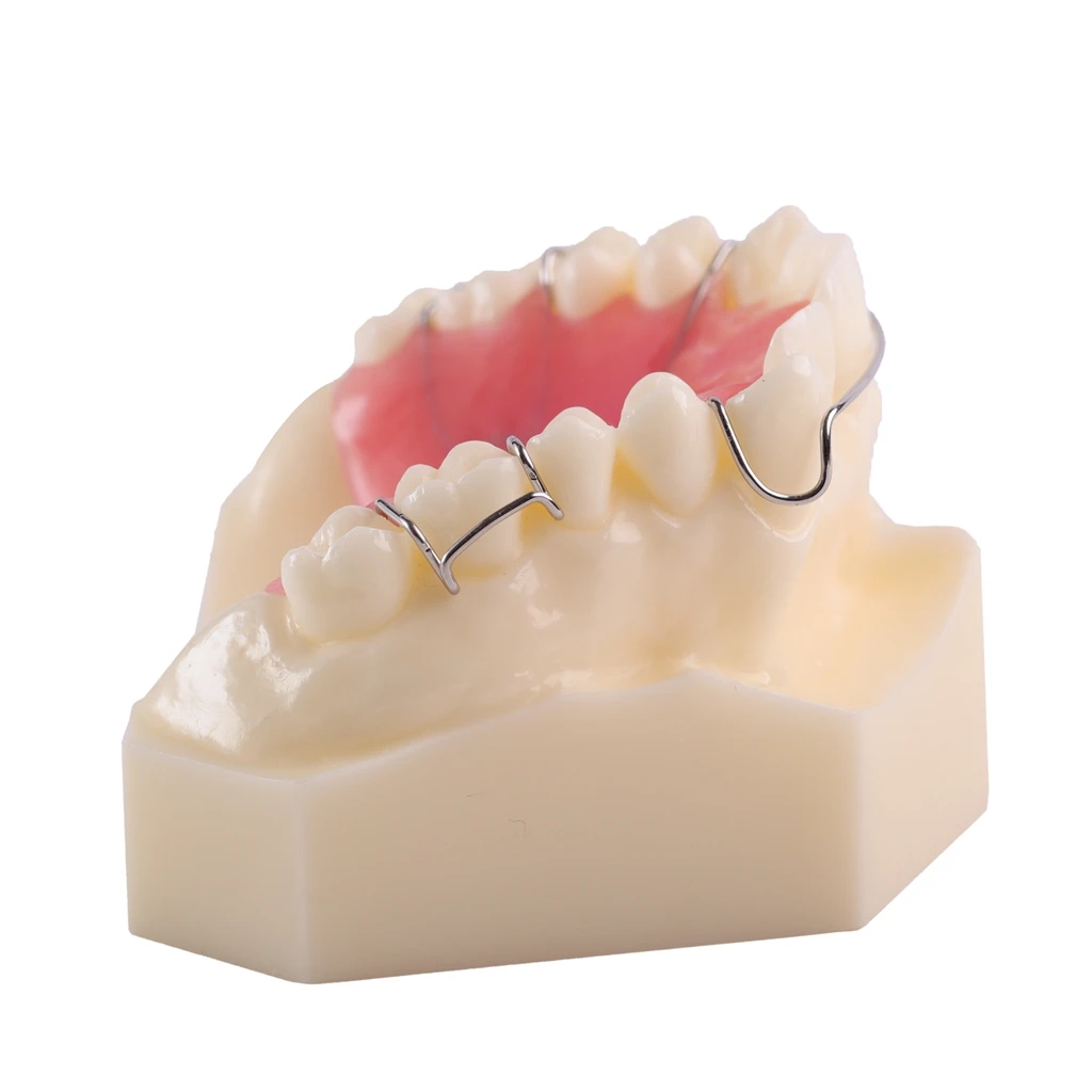 Демонстрирует Холи фиксатор, включая металлический провод, который обычно окружает шесть передних зубов;