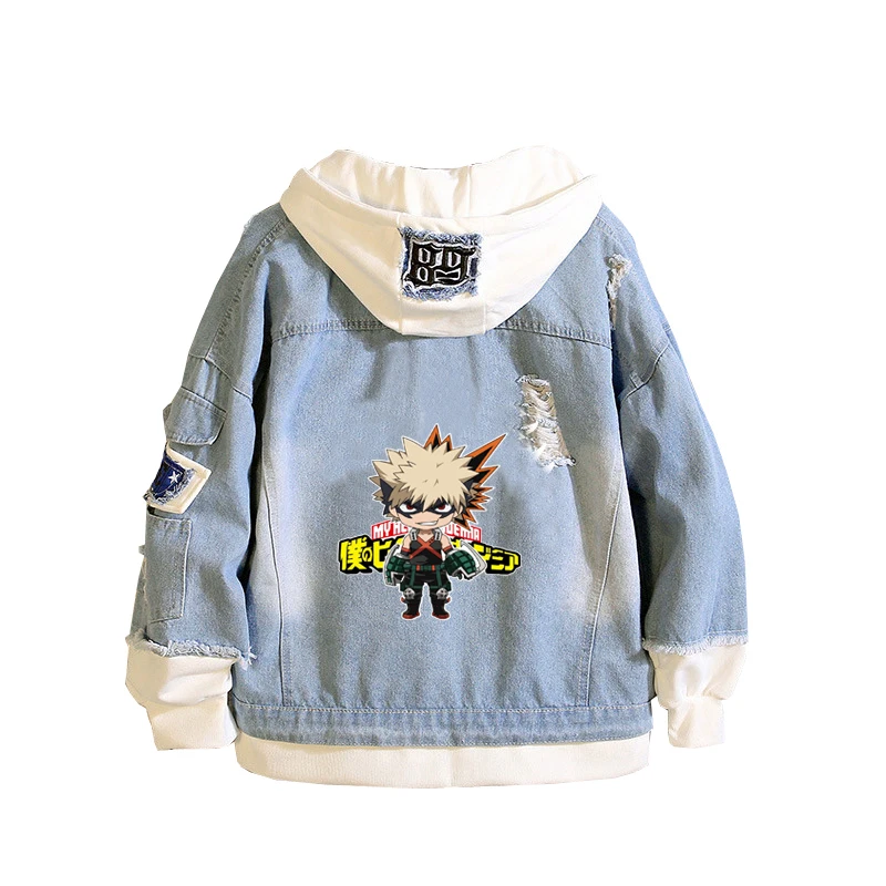Джинсовая куртка большого размера с капюшоном «My Hero Academy»; Осенняя толстовка с капюшоном; Джинсовая куртка; Ветровка с капюшоном в стиле Харадзюку; Уличная одежда