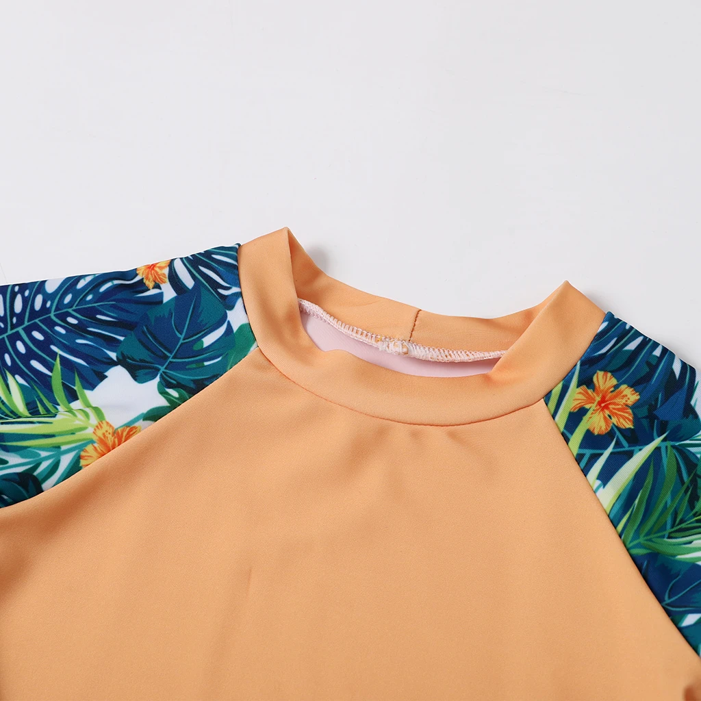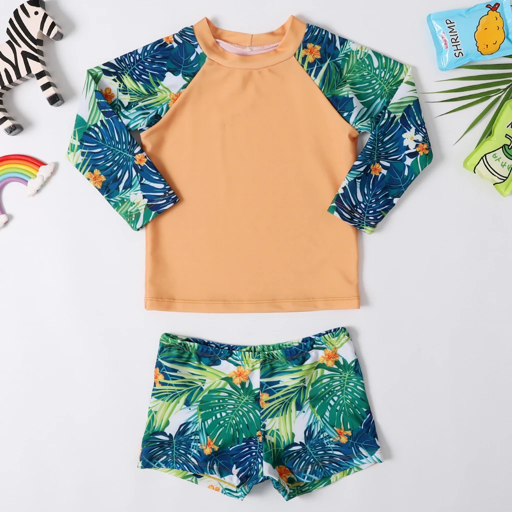 Новинка 2019 года; купальный костюм для маленьких мальчиков; детский купальный костюм с длинными рукавами; детский купальный костюм из двух предметов; купальный костюм с тропическими листьями для мальчиков; пляжная одежда
