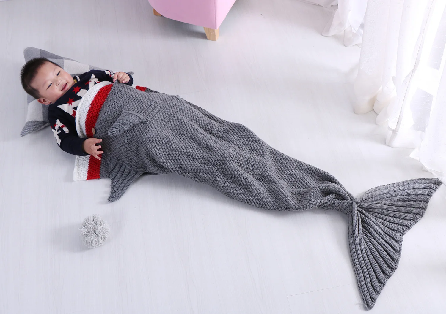 Детское вязаное одеяло в виде рыбьего хвоста; Маленькое одеяло в виде хвоста акулы; Детское одеяло для дивана; Детское одеяло русалки; Повседневное одеяло с рисунком