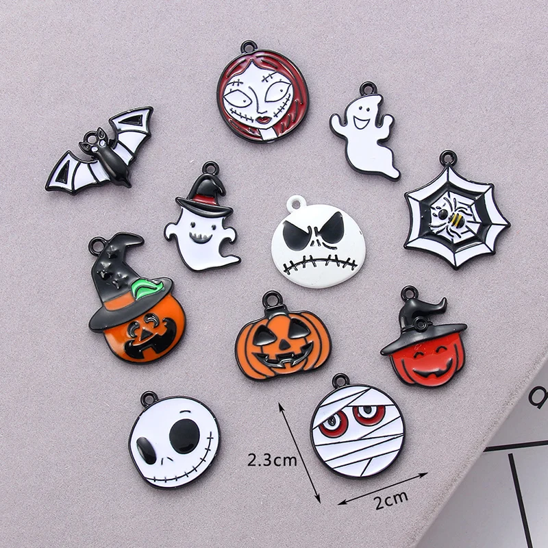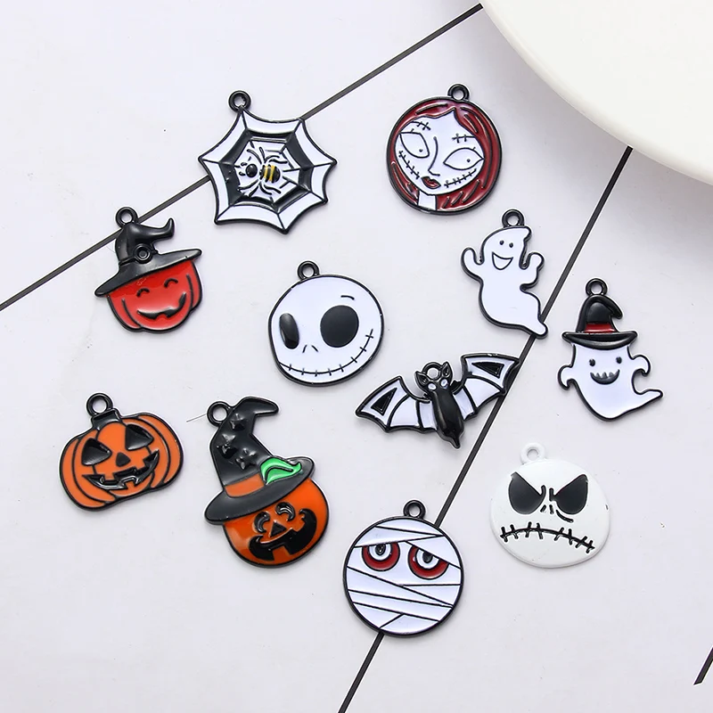 10 шт./лот Эмаль Хэллоуин Тыква Сплавный подвеска Милые обереги Ожерелья Серьги Аксессуары для создания ювелирных изделий на.