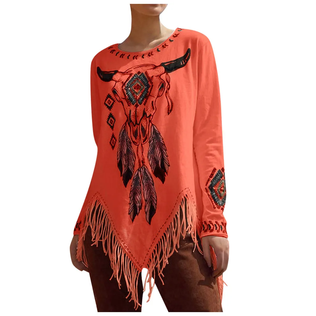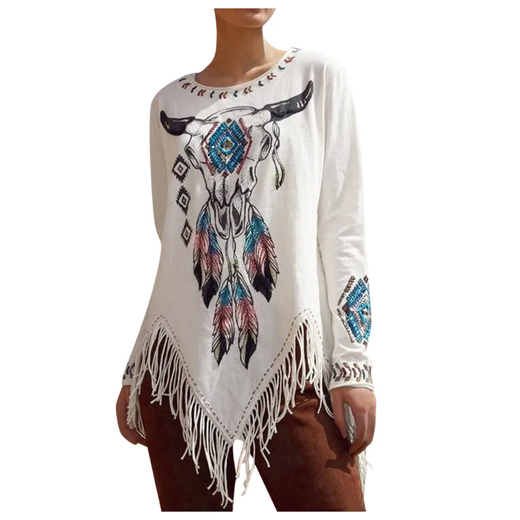Женская Осенняя Повседневная Блузка с длинными рукавами и принтом; Женская Повседневная футболка