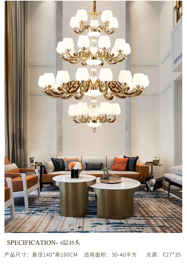 Современная роскошная светодиодная люстра Материал: цинковый сплав + нефрит Источник света: E27, включая лампу Размер: 18 головок-диаметр 95 см 24 Головки Диаметр 120 см 30 головок-диаметр 140 см 35 голов-диаметр 140 см Напряжение: от 90 до 260 в Применение: гостиная, спальня, зал, лобби, прихожая, проход, балкон и т. Д.