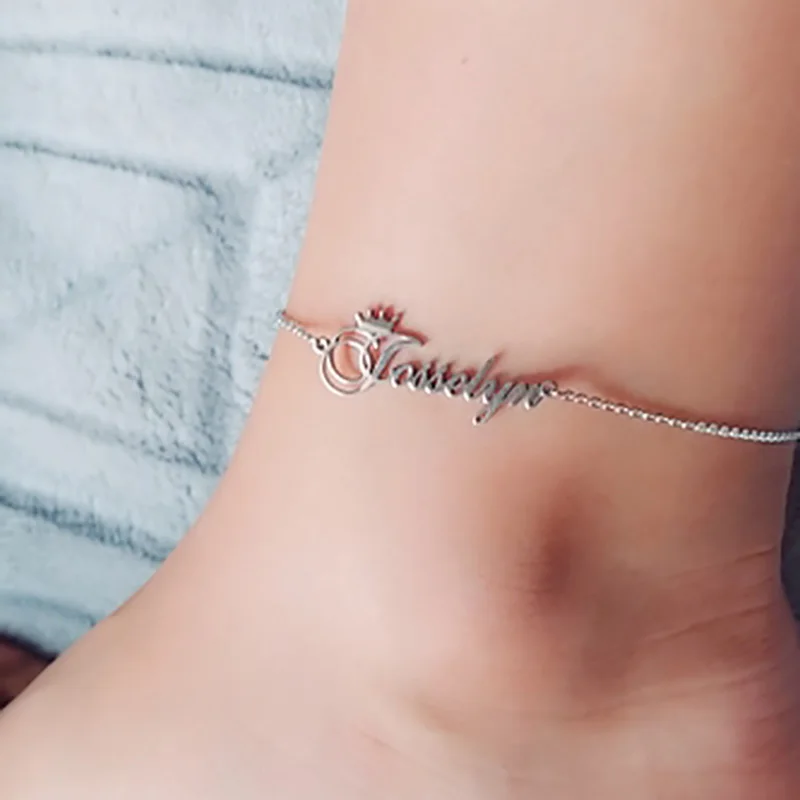 Индивидуальный индивидуальный ножной браслет, прочное розовое золото, с именем короны, на лодыжке, на ногу, цепочка, браслет, на ногу, ювелирные изделия для женщин, Летние подарки для вечеринки