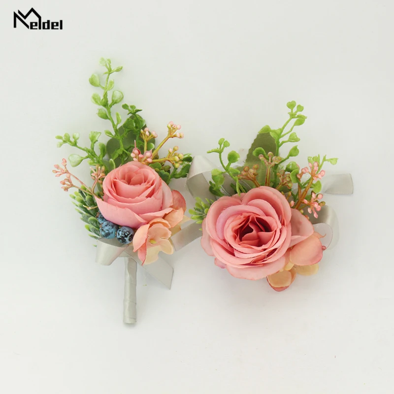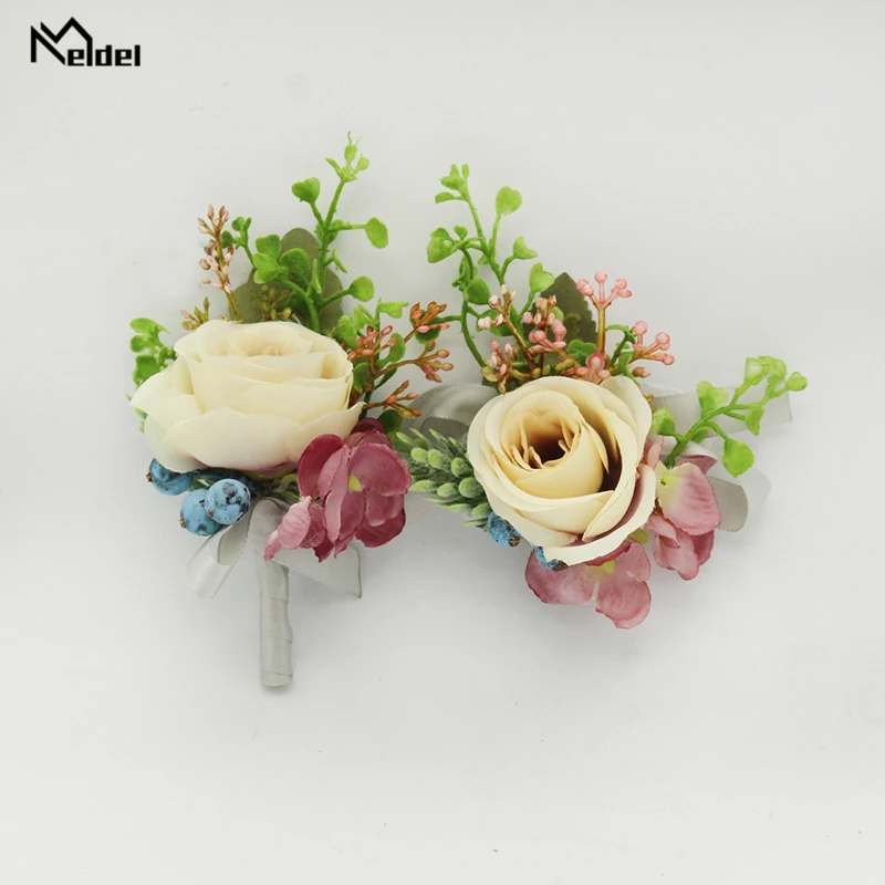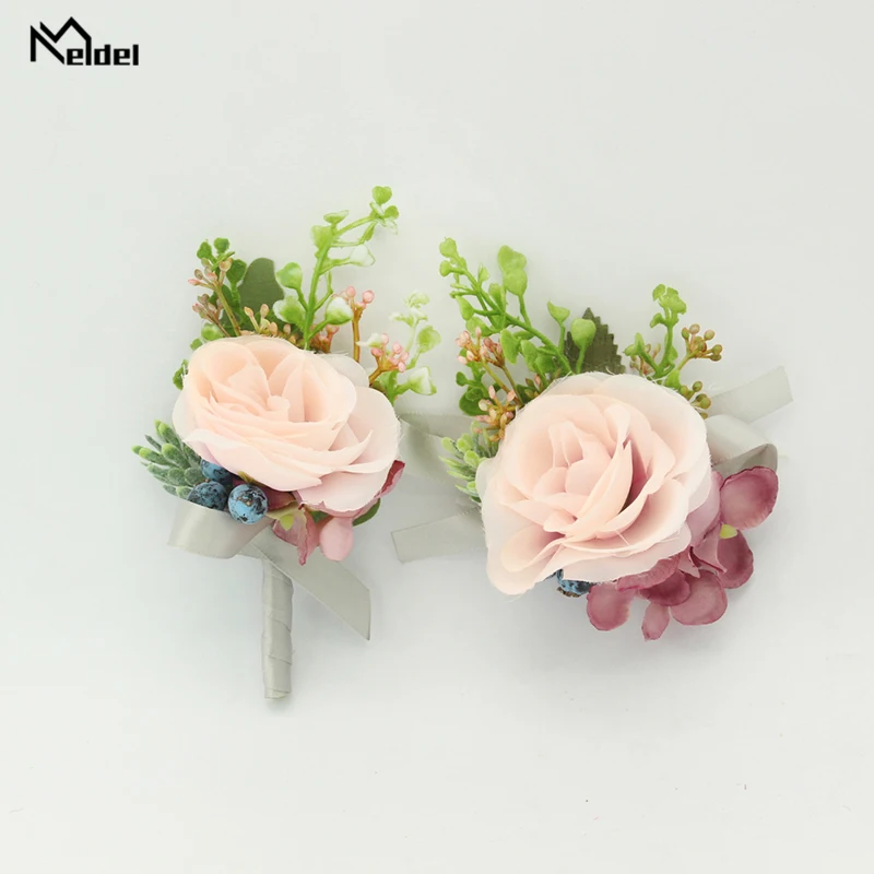 Корсет для невесты бутоньерка Meldel, свадебный браслет, Цветочная шелковая лента, бутоньерка для жениха, Свадебный планировщик, корсаж на запястье для девушки