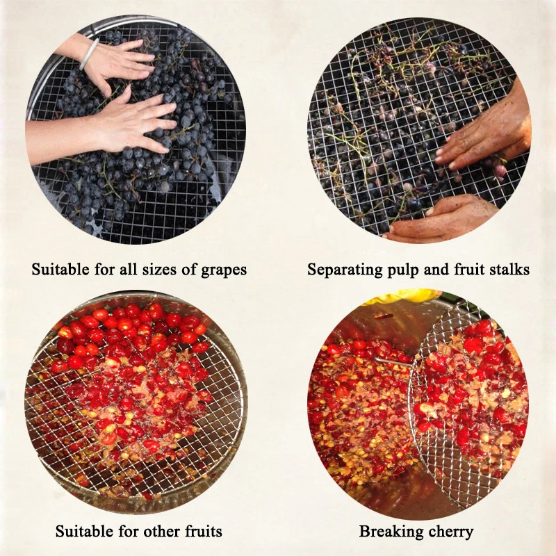 Как использовать: Положите весь пучок или несколько гроздей винограда в сеть и нажмите их на решетку, чтобы быстро вращаться и ломаться или быстро разбивать сетку. Легко завершить удаление виноградных косточек и сэкономить стоимость дорогого удаления виноградных косточек.