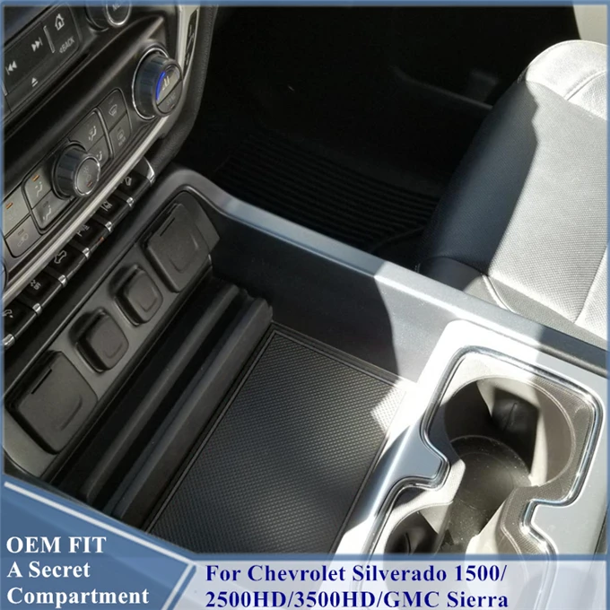 Подходит для 2014 2015 2016 2017 2018 2019 GMC Sierra и 2014 2015 2016 2017 2018 Chevrolet Silverado 1500 и 2015 2016 2017 2018 Chevrolet Silverado 2500 HD 3500 HD переднего консольного лотка. Примечание. Прикрепляется только к консоли с фиксированным неподвижным держателем чашки в задней части, которая имеет гладкую боковую стену без слотов, пожалуйста, дважды проверьте список фотографий перед размещением заказа.