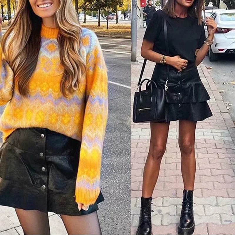 Женская винтажная юбка миди с принтом подсолнухов черная плиссированная