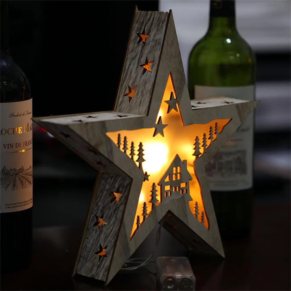 Деревянный Рождественский светодиодный светильник с пентаграммой, мигающая звезда, настольные лампы, энергосберегающий Рождественский светильник, подвесной светильник, новогодний декор для праздников и вечеринок