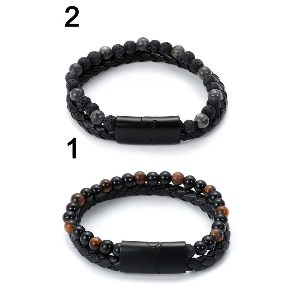 Браслет из натурального камня и искусственной кожи, Черная магнитная застежка, тигровый глаз, браслет из бисера для Мужчин, Ювелирные изделия