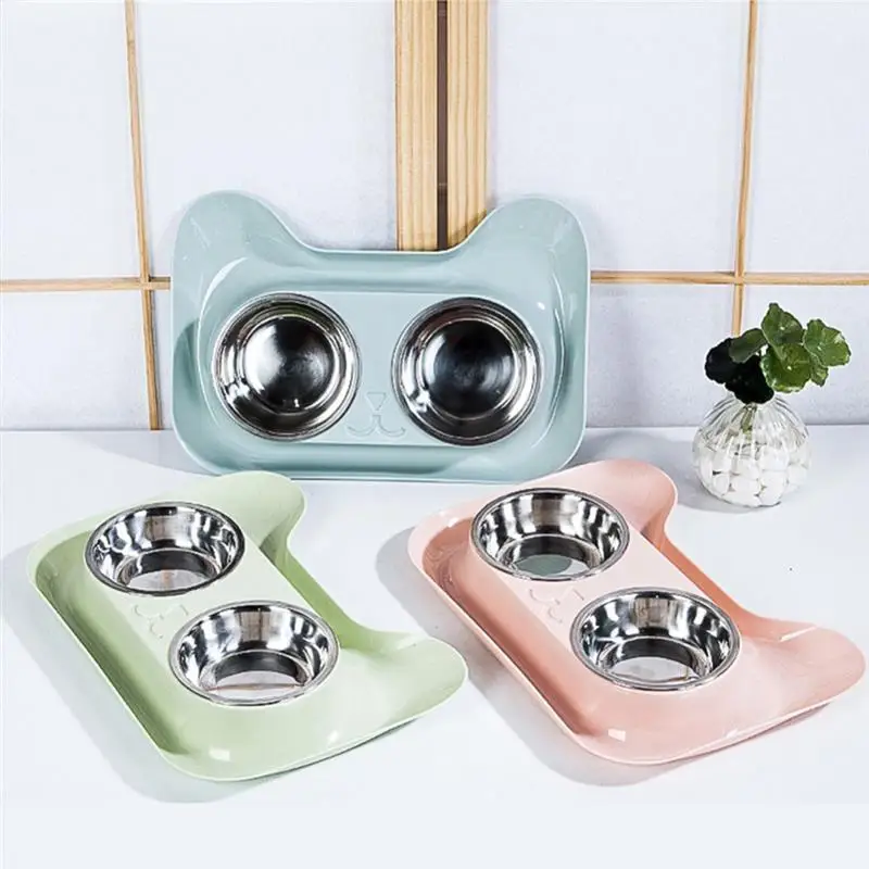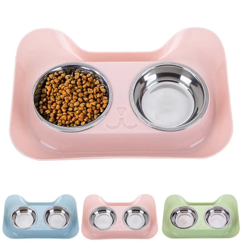 2 в 1 набор мисок для домашних животных двойные миски из нержавеющей стали Нескользящая миска для собак и кошек кормушка для воды и корма для домашних животных принадлежности для кормления кошек и собак