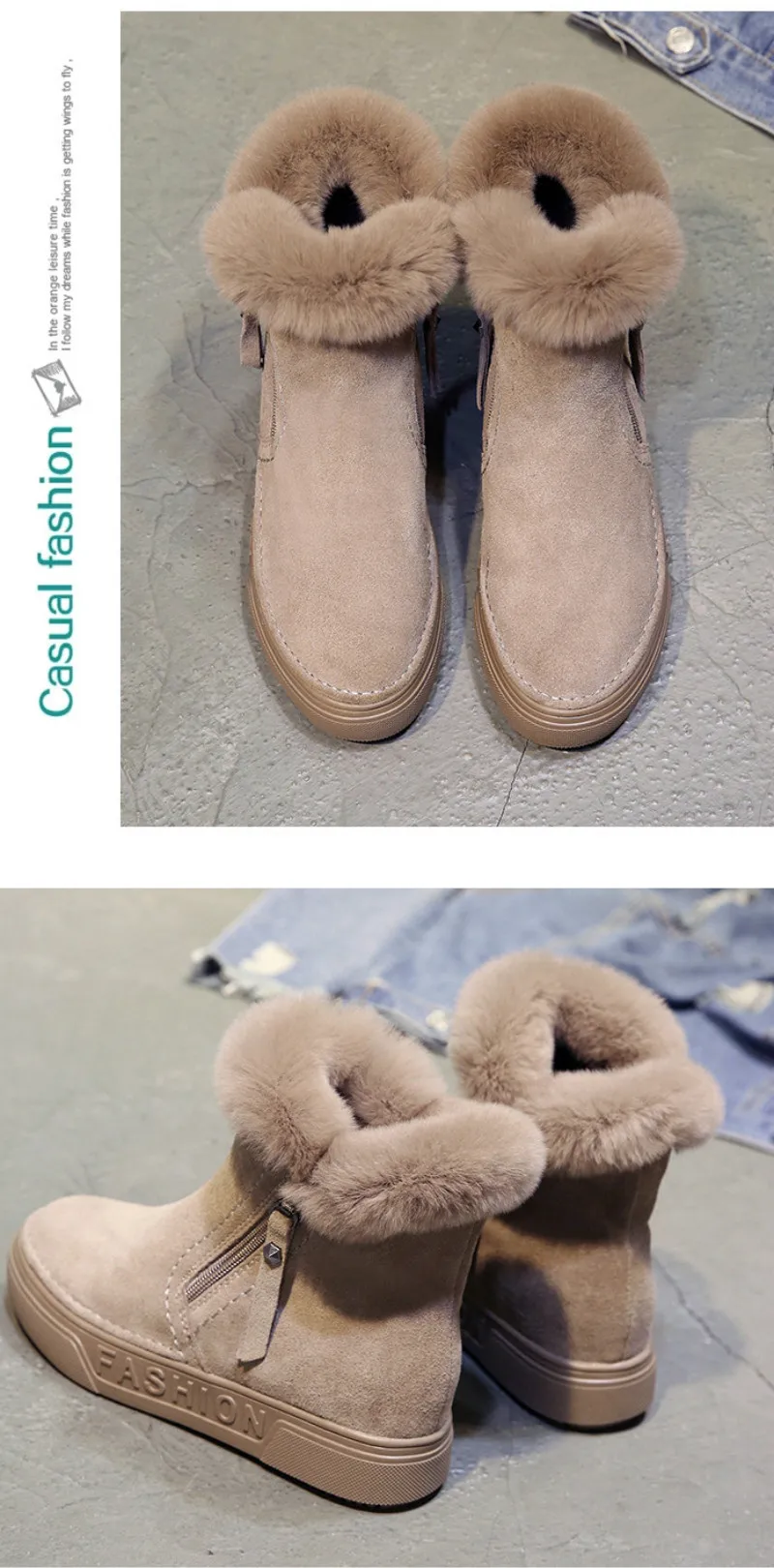 Женские зимние ботинки; Теплые зимние ботинки; Замшевые ботинки на меху; Женская повседневная обувь на плоской подошве; Модная плюшевая обувь на молнии; Bottine Femme; HVT549; 2019