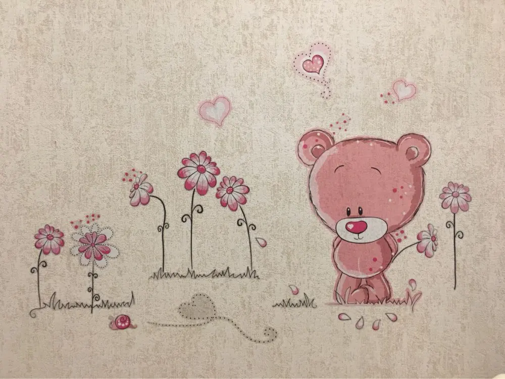 Wall Paper Stickers Cute Pink Cartoon Animal Love Bear Flower Baby Children Bedroom Room Decoration nursery decal girl gift Poster