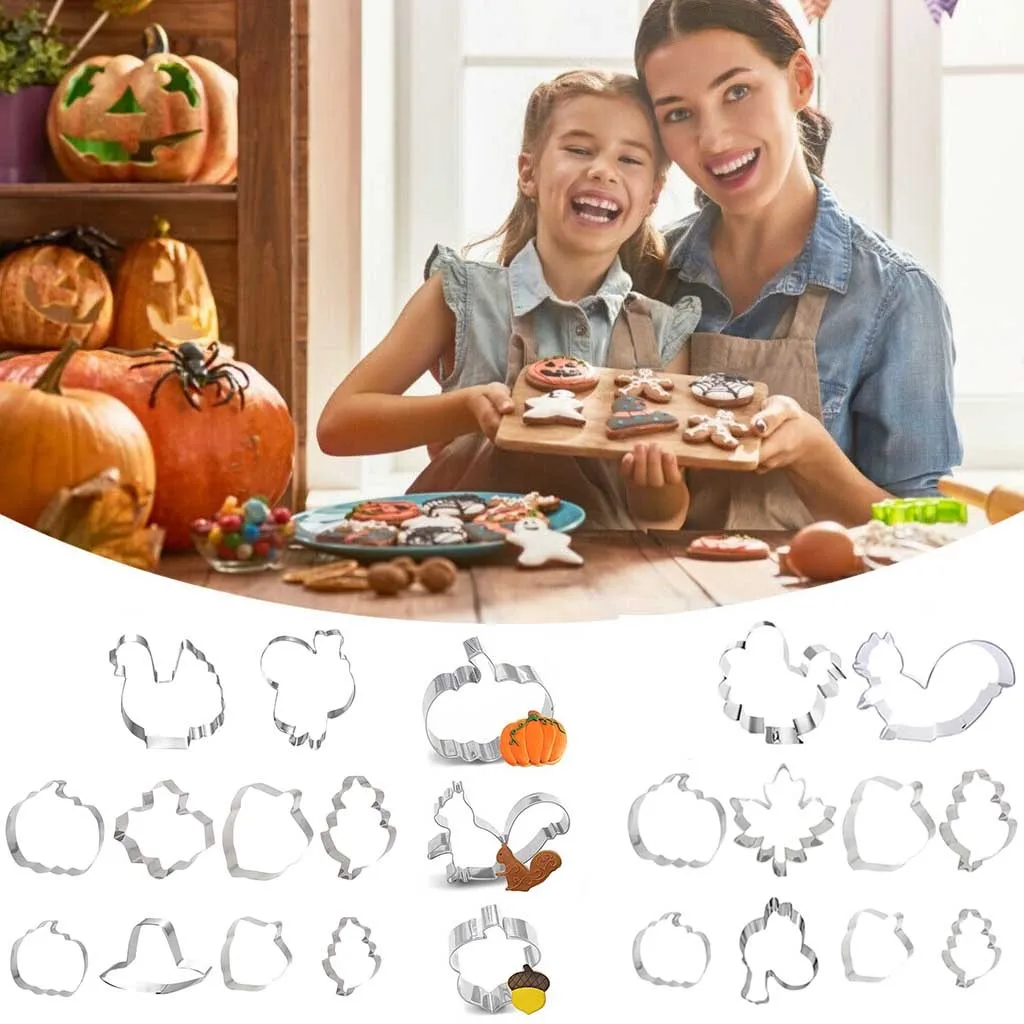 В нашем осеннем наборе резаков для печенья есть 10 различных форм, вы можете испечь и украсить печенье этими забавными формами.