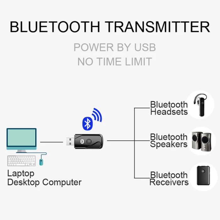 3.Совместимость: После подключения продукта к компьютеру, он поддерживает подключение к аудиоприборам Bluetooth, таким как bluetooth-гарнитуры, bluetooth-колонки,Bluetooth-аудиоприемник и т. д., не поддерживает usb-устройства, такие как TV, колонки, усилители и т. д.