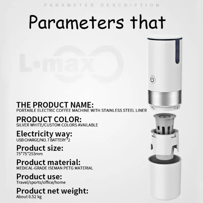1 x кофемашина (аккумулятор не входит в комплект) 1 x USB кабель1 x Руководство по эксплуатации на китайском и английском языках
