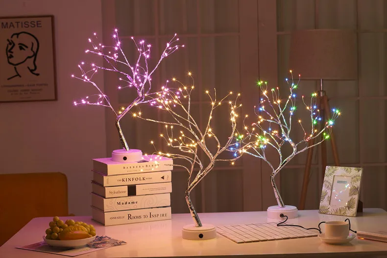 1. Стильный дизайн бонсай, идеально подходит для украшения дома на столе или столе. Светильник с рождественской елкой, украшенный множеством теплое белое светодиодное освещение светильник s. Яркие цветы, коричневый стебель и ветви, более привлекательные, чем настоящие растения бонсай.