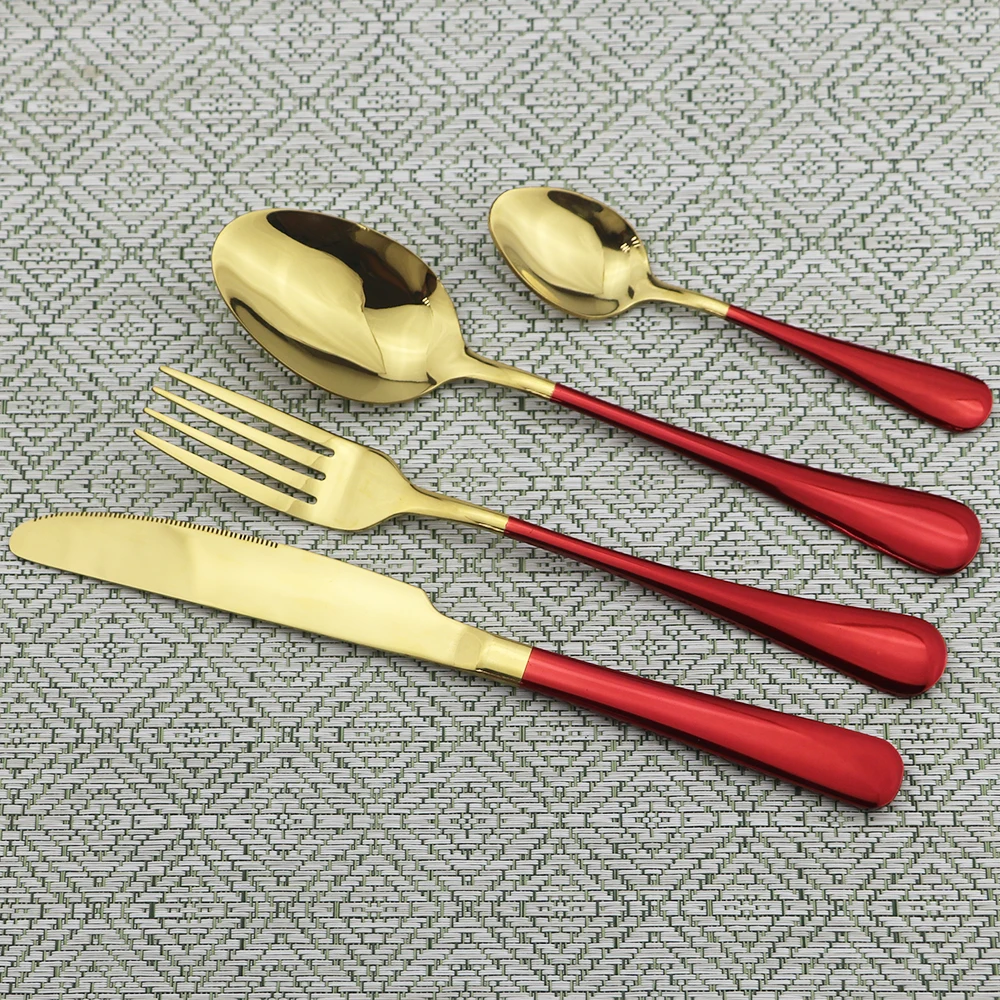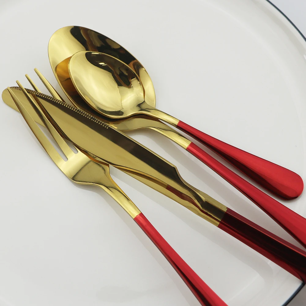 24 шт. роскошный блестящий золотой Набор радужных столовых приборов 304 нержавеющая сталь набор посуды нож вилка ложка с коробкой для отеля набор посуды