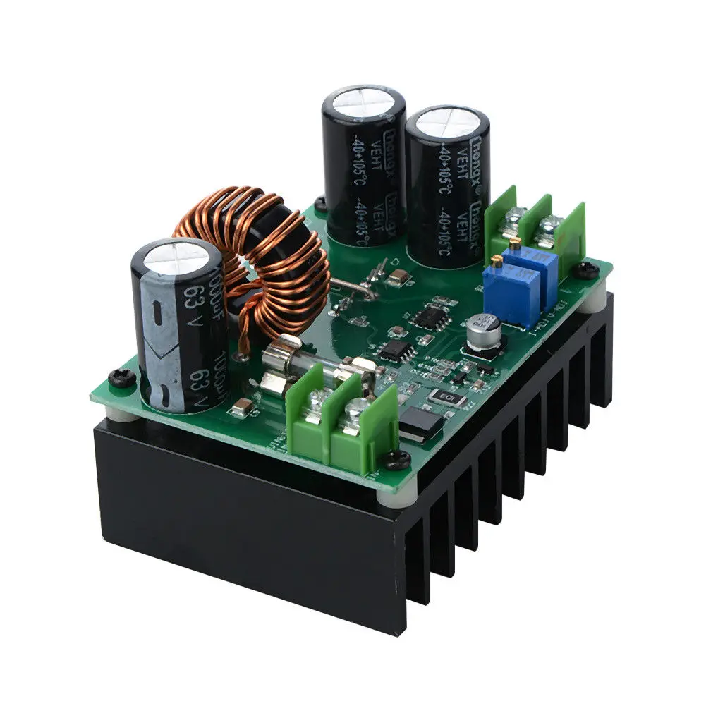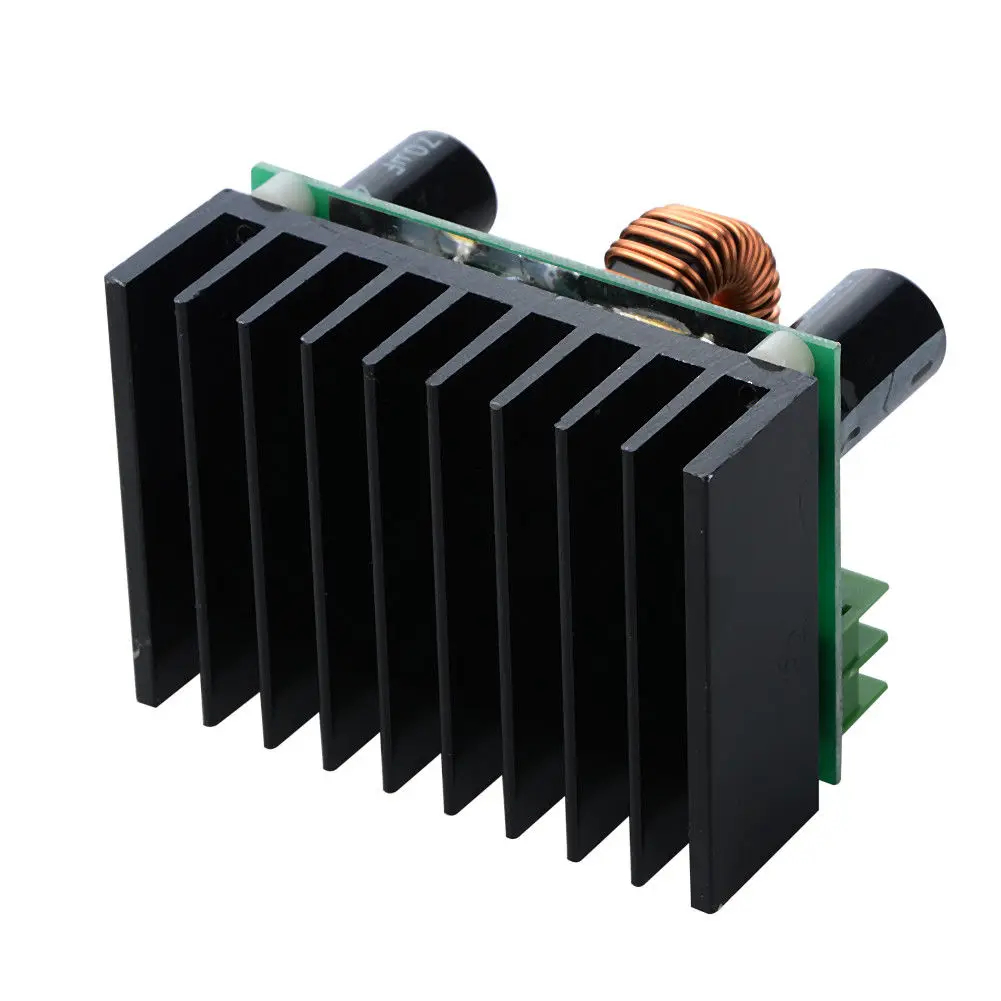 Параметры: Входной ток: Максимальный входной ток 15А Выходное напряжение: 12 V-80 V непрерывная регулировка Выходной ток: Максимальный выходной ток 10А (регулируемый) Выходная мощность: эффективная мощность P = входное напряжение V * 10A Эффективность преобразования: до 95% (входное напряжение, ток; выходное напряжение и текущее воздействие эффективности преобразования) Защита от короткого замыкания: предохранитель Вес нетто: 272 г Размер: 82*61*60 мм Цвет: черный и зеленый Посылка включает в себя: 1 x Повышающий Модуль преобразователя