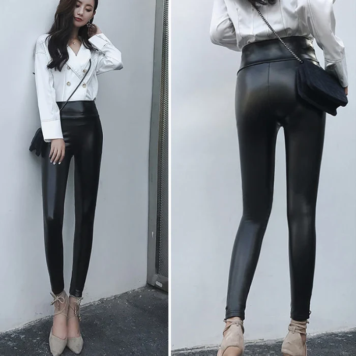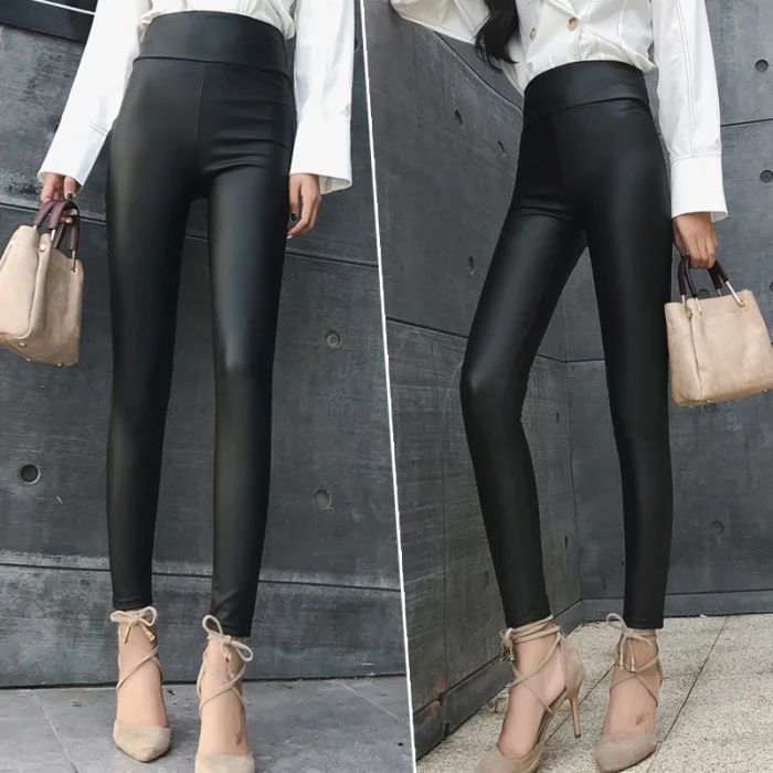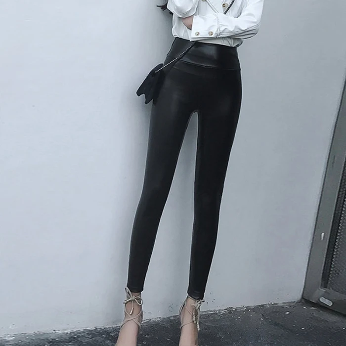 Эластичный облегающий PU кожаный корсет с высокой талией леггинсы брюки для женщин осень зима TY66