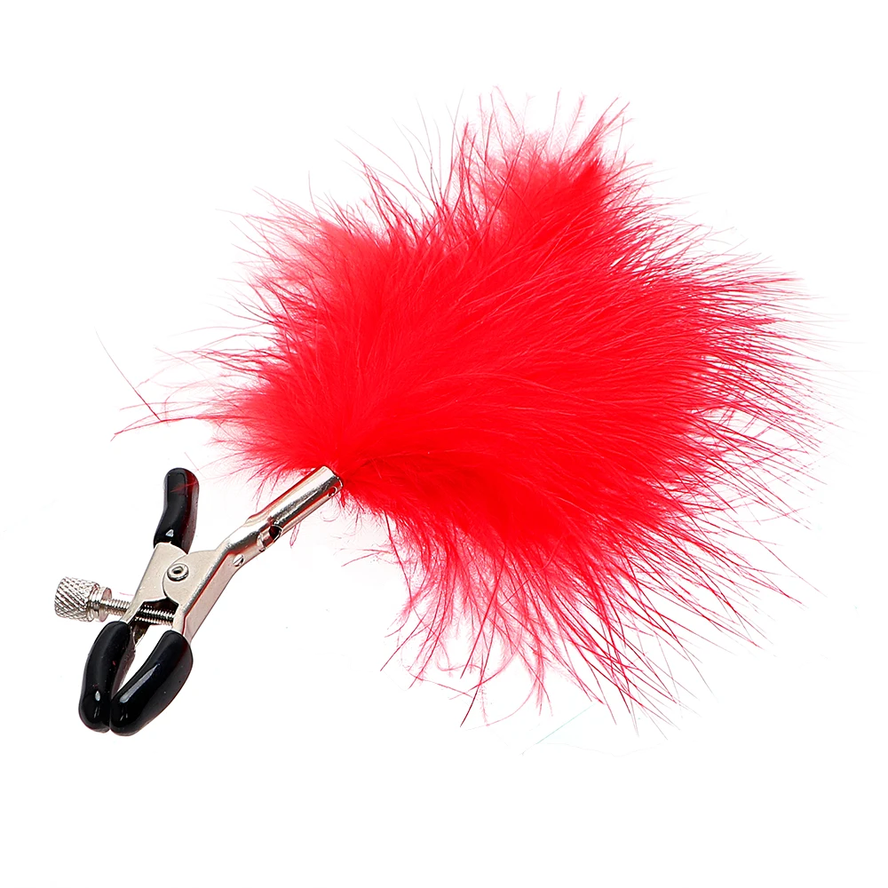 100% Новинка и высокое качество Секс-игрушки для мужчин и женщин, милые и забавные Эти зажимы для сосков поставляются с резиновыми наконечниками для защиты ниппеля Горячие прекрасные игрушки, просто наслаждайтесь им Материал:Металлический корпус,Перо Цвет: черный, розовый, красныйКонфиденциальности гарантировано: