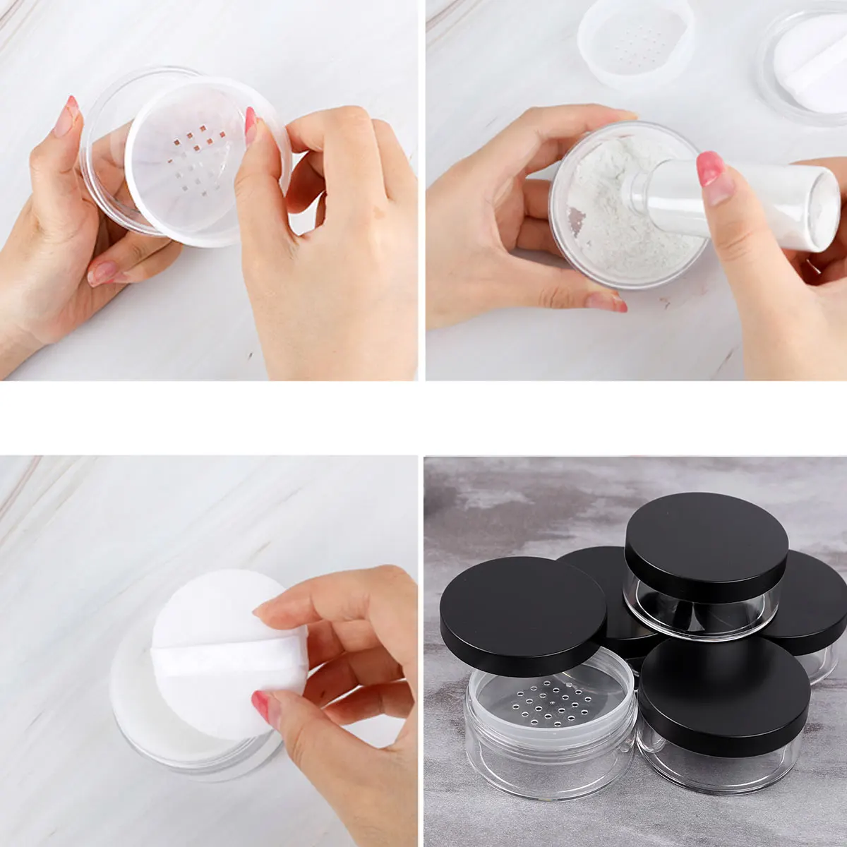 Винтовая крышка легко винты вместе для компактного хранения, хорошая производительность герметизации предотвращает распространение порошка.