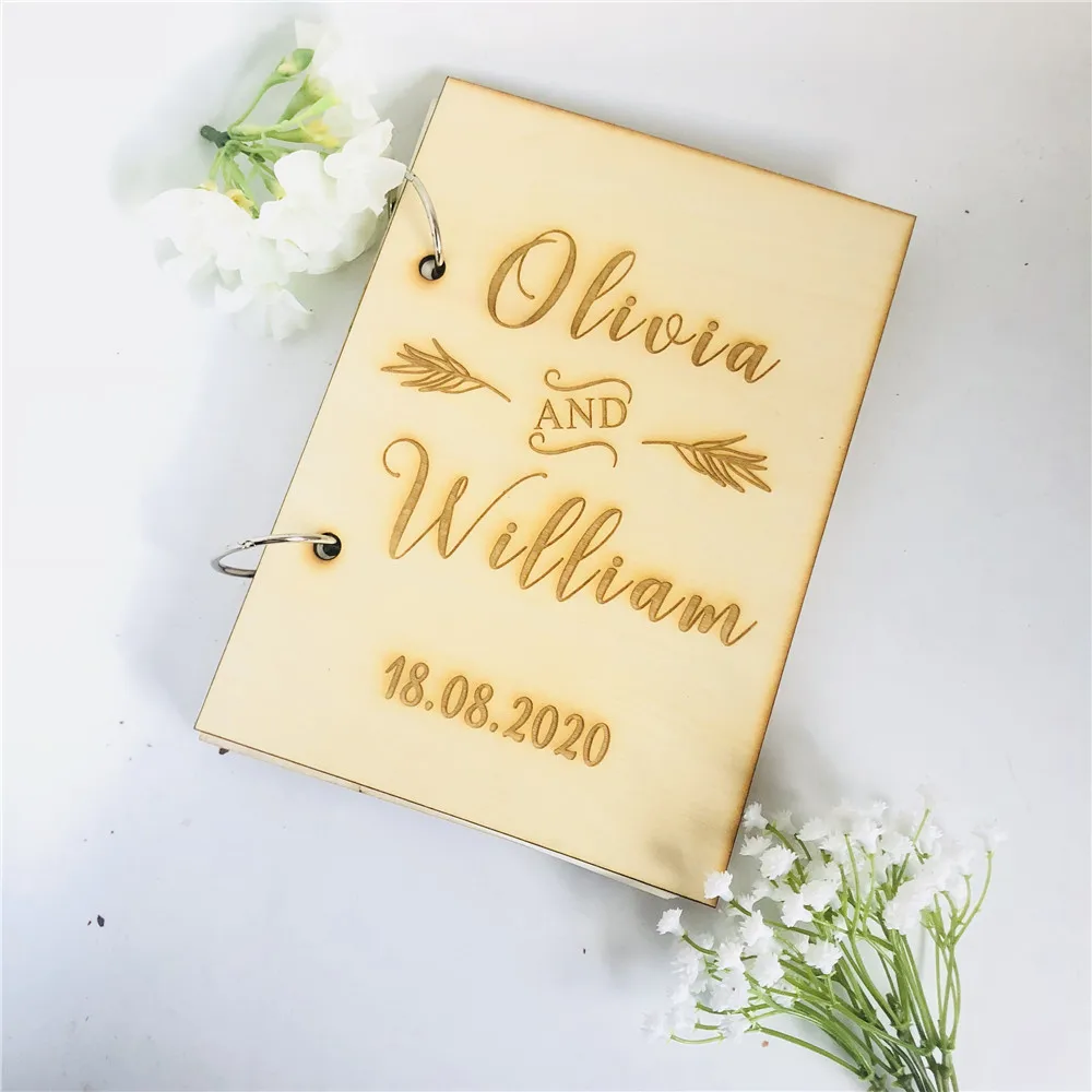Размер А5-Персонализированная Свадебная Гостевая книга -25 листов (50 страниц) с крафт-вставкой или Белой Вставкой -Размеры А5 деревянная крышка-около (21 см х 15 см) А4 Деревянная обложка-около (21 см х 30 см)