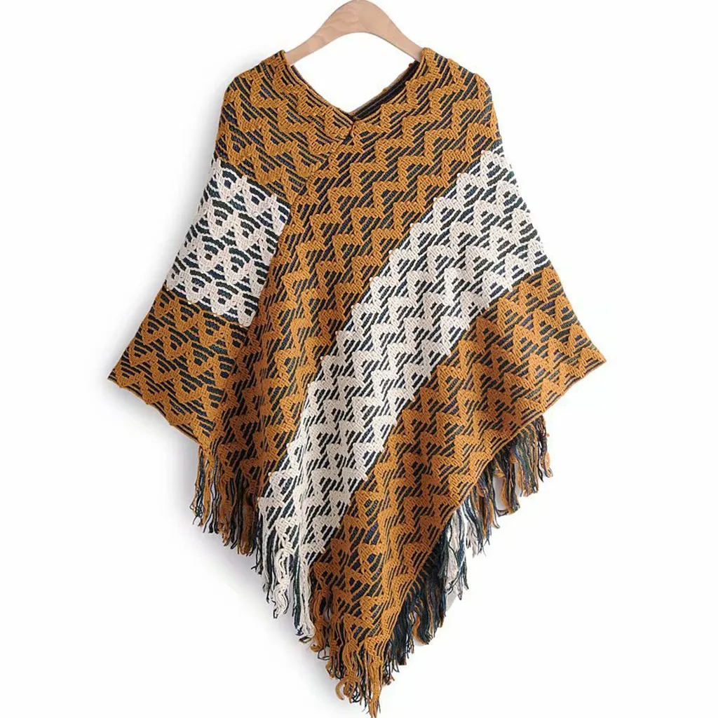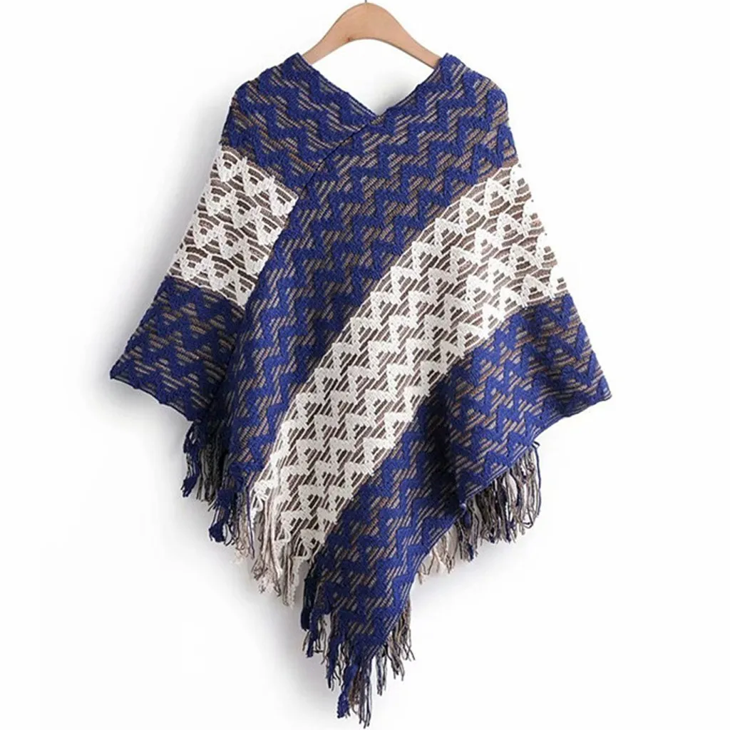 Женская зимняя шаль-свитер с вышитым принтом и кисточками, накидка-накидка с крыльями летучей мышиОсобенности: